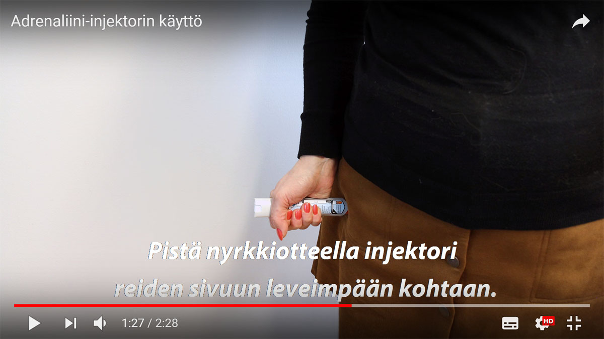 – Tärkeintä on uskaltaa pistää! Anafylaksiaa sairastavalla tulee olla aina mukanaan adrenaliini-injektori, mutta hän voi tarvita apua pistämiseen. Tärkeämpää on pistää kuin empiä ja jättää pistämättä, Kaisa Toikko sanoo.