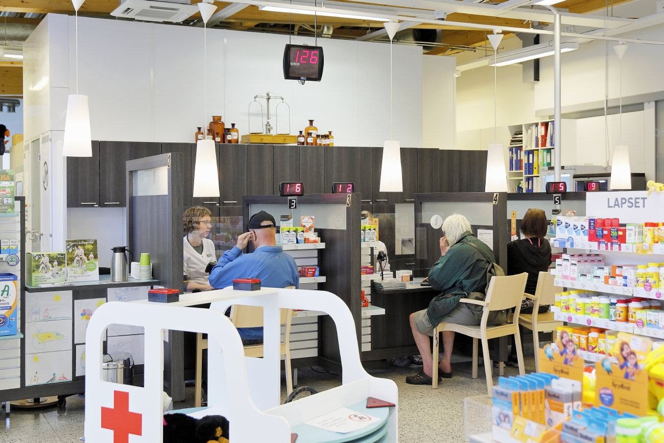Pikkukaupungin keskellä sijaitseva apteekki on auki kuutena päivänä viikossa ja siksi luonteva paikka kysyä neuvoa terveydenhuollon ammattilaisilta. Apteekki palvelee maksutta ja aikaa varaamatta.