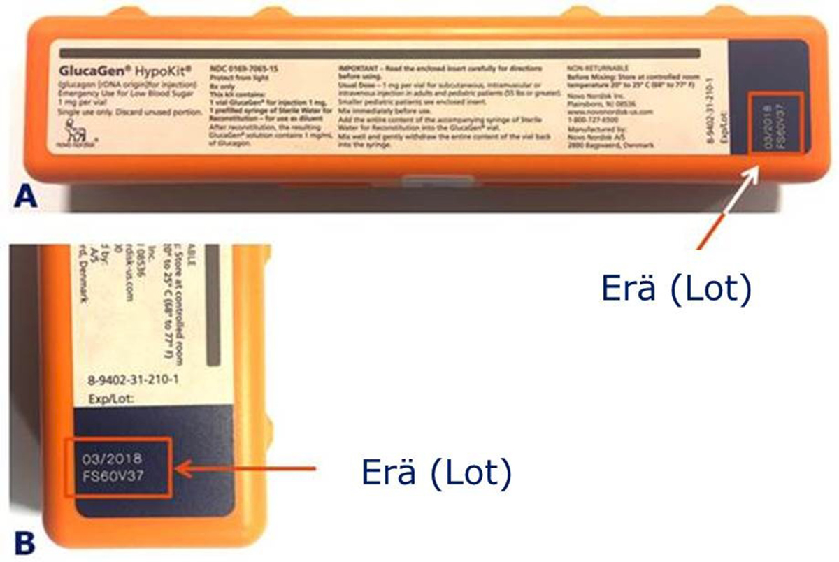 Erät, joita takaisinveto koskee Suomessa, ovat: FS6X463 (viimeinen käyttöpäivä: 08/2018) ja FS6X910 (viimeinen käyttöpäivä: 09/2018). Eränumero on mainittu lääkepakkauksessa.