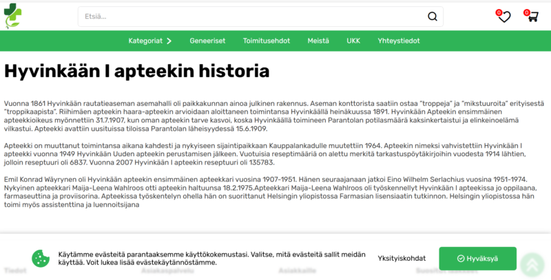 • Hämärä verkkosivusto väittää historiaosiossaan olevansa Hyvinkään I apteekki.