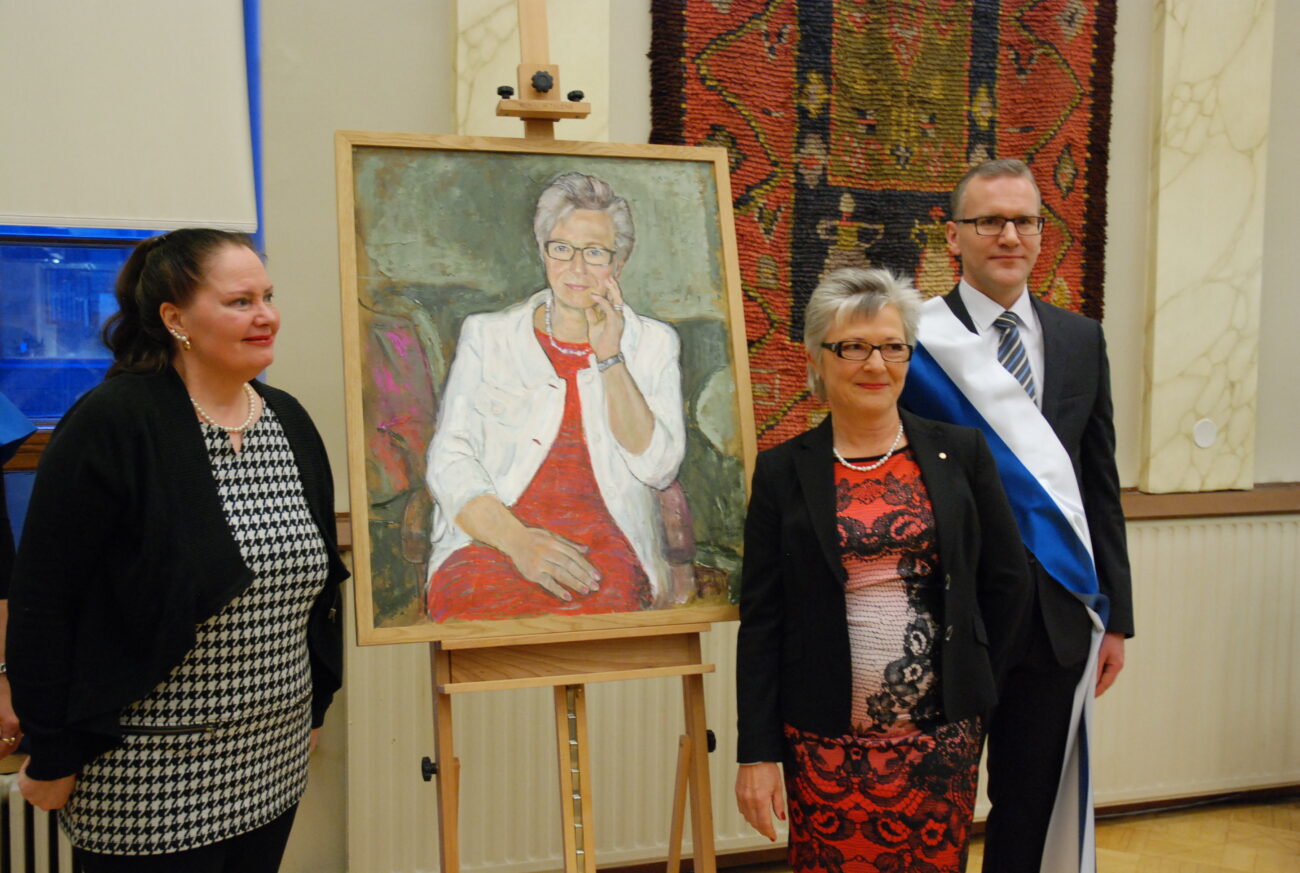 Apteekkariliiton entisen puheenjohtajan Riitta Andersinin muotokuva paljastettiin Apteekkariliitossa perjantaina.