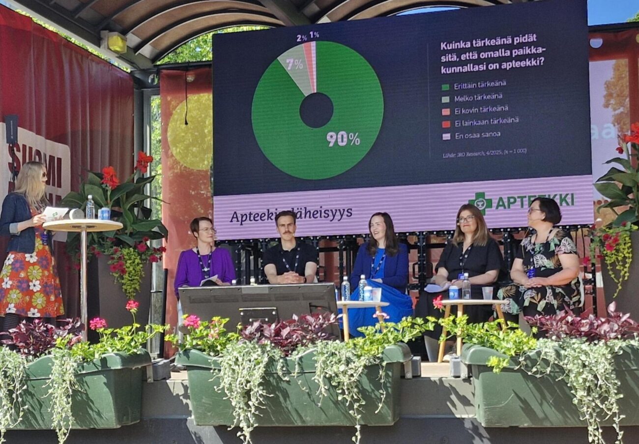 Suomalaiset haluavat, että omalla kotipaikkakunnalla on lähiapteekki. Samaa halusivat useimmat panelistit SuomiAreenan apteekkipaneelissa. Apteekeista keskusteltiin Porin SuomiAreenassa torstaina otsikolla ”Apteekin tulevaisuus puntarissa – onko meillä lähiapteekki huomennakin?”.