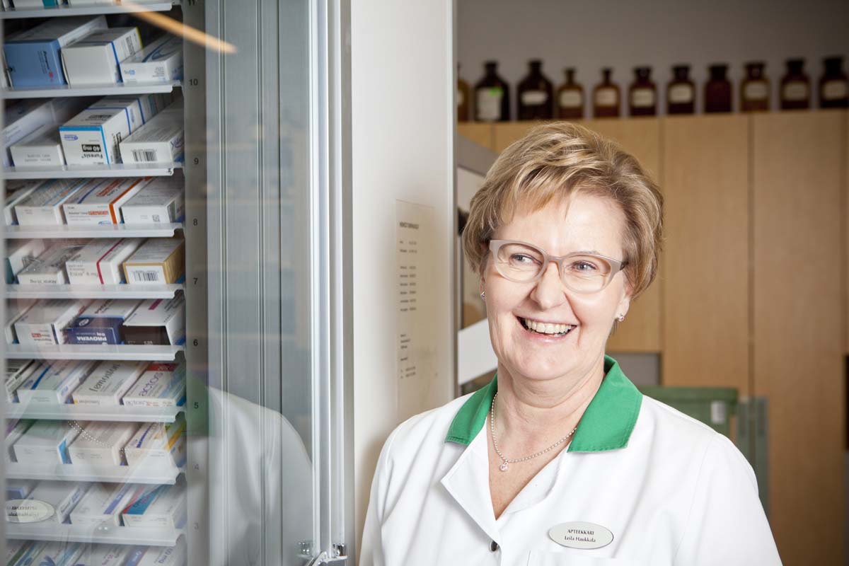 Joulukuussa tuli kuluneeksi 20 vuotta siitä, kun Leila Haukkala aloitti apteekkariuran. Hän on jäljellä olevista työvuosista kiitollinen, monen kollegan apteekkariura jää 10–15 vuoden mittaiseksi.